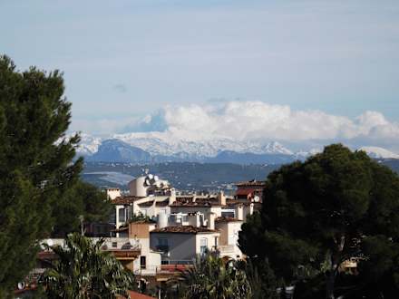 Auf das Schneebedeckte Tramuntana-Gebirge
