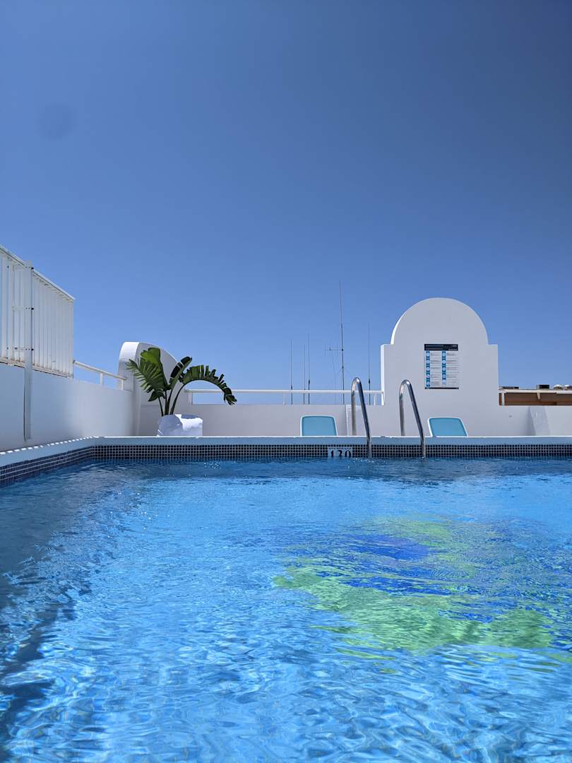 Pool mit Liegen.