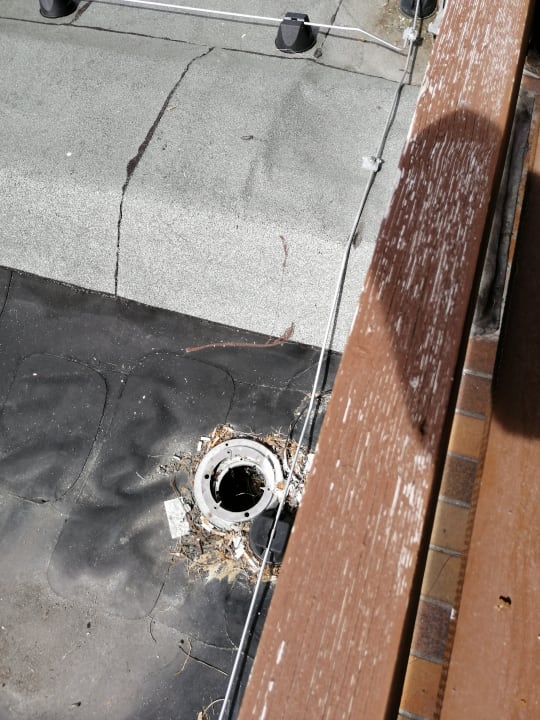 AußenansichtAusblick vom Balkon auf das Teerdach, den versifften Abfluss und das alles im 4 Sterne Hotel. Gut?