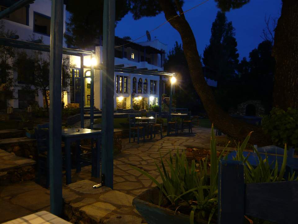 Restaurant und Garten zwischen Hotel und Meer