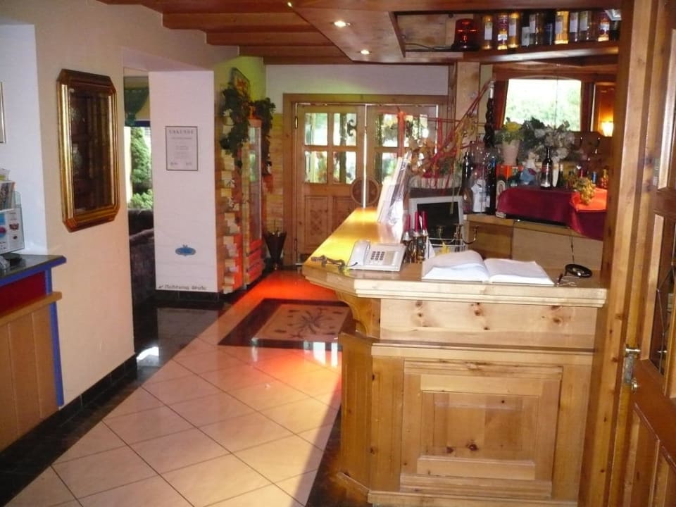 Links de receptie, rechts de hotelbar