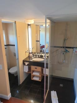 Zimmeroffenes Badezimmer in Maisonette-Suite