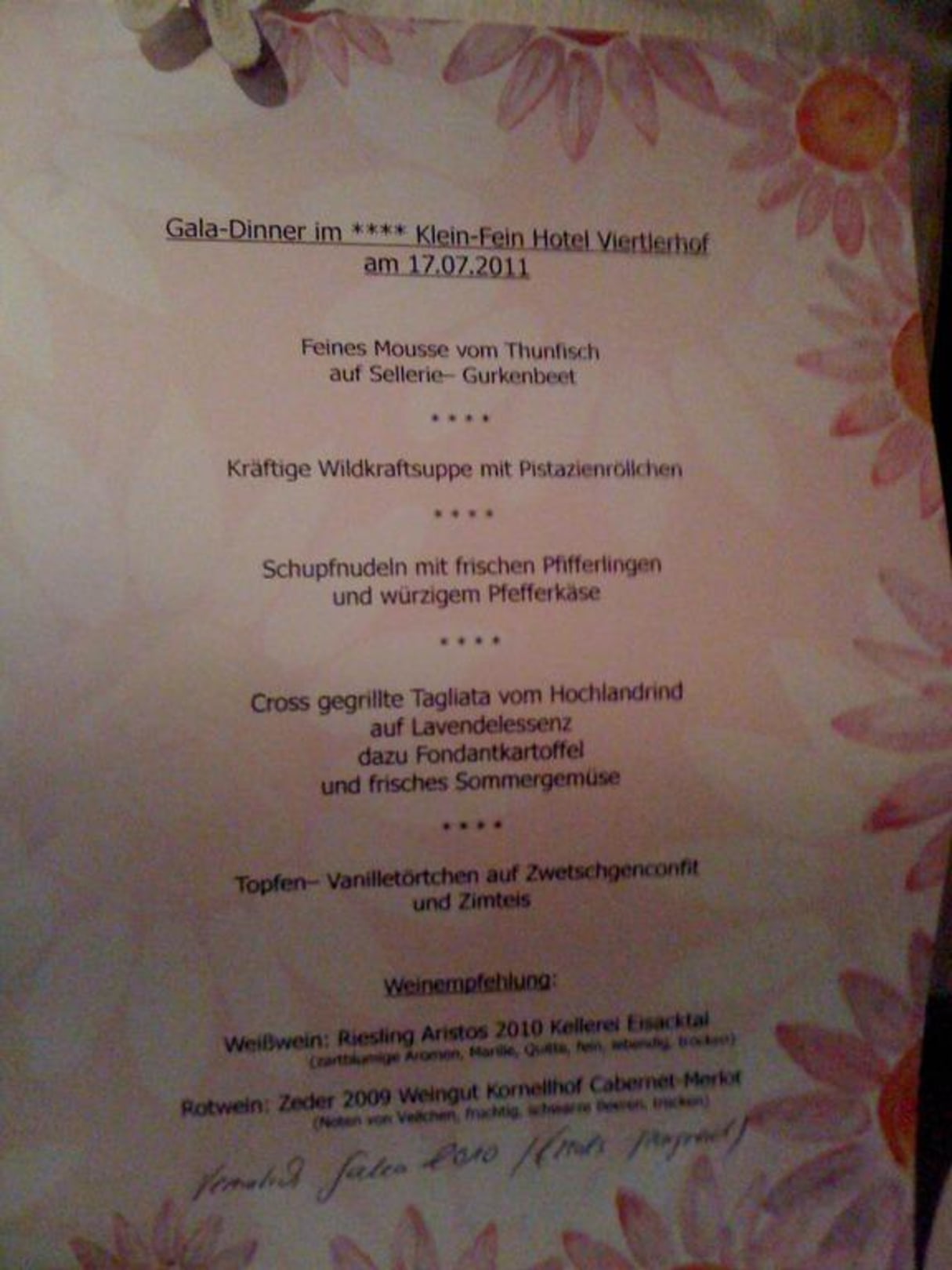 Gala-Dinner im Hotel Viertlerhof.....Besser geht es doch nicht, oder?