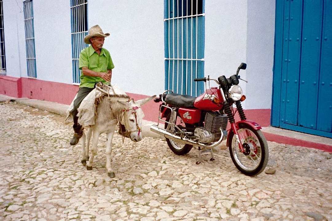 Historische Fahrzeuge in Trinidad, Original MZ und OriginalNeben klasse US-Oldtimern aus den 50ern waren auch zahlreiche sehr gut erhaltene MZ-Motoräder in Cuba zu sehen, manche sahen wie frisch aus dem Laden aus. Da sieht man, welchen Stellenwert Kraftfahrzeuge in dem ansonsten doch recht armen Land haben.