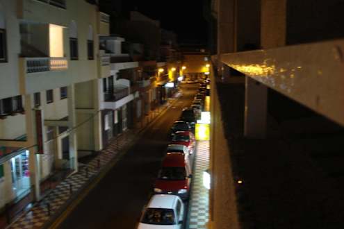Blick vom Balkon in die Calle de los Angeles bei Nacht