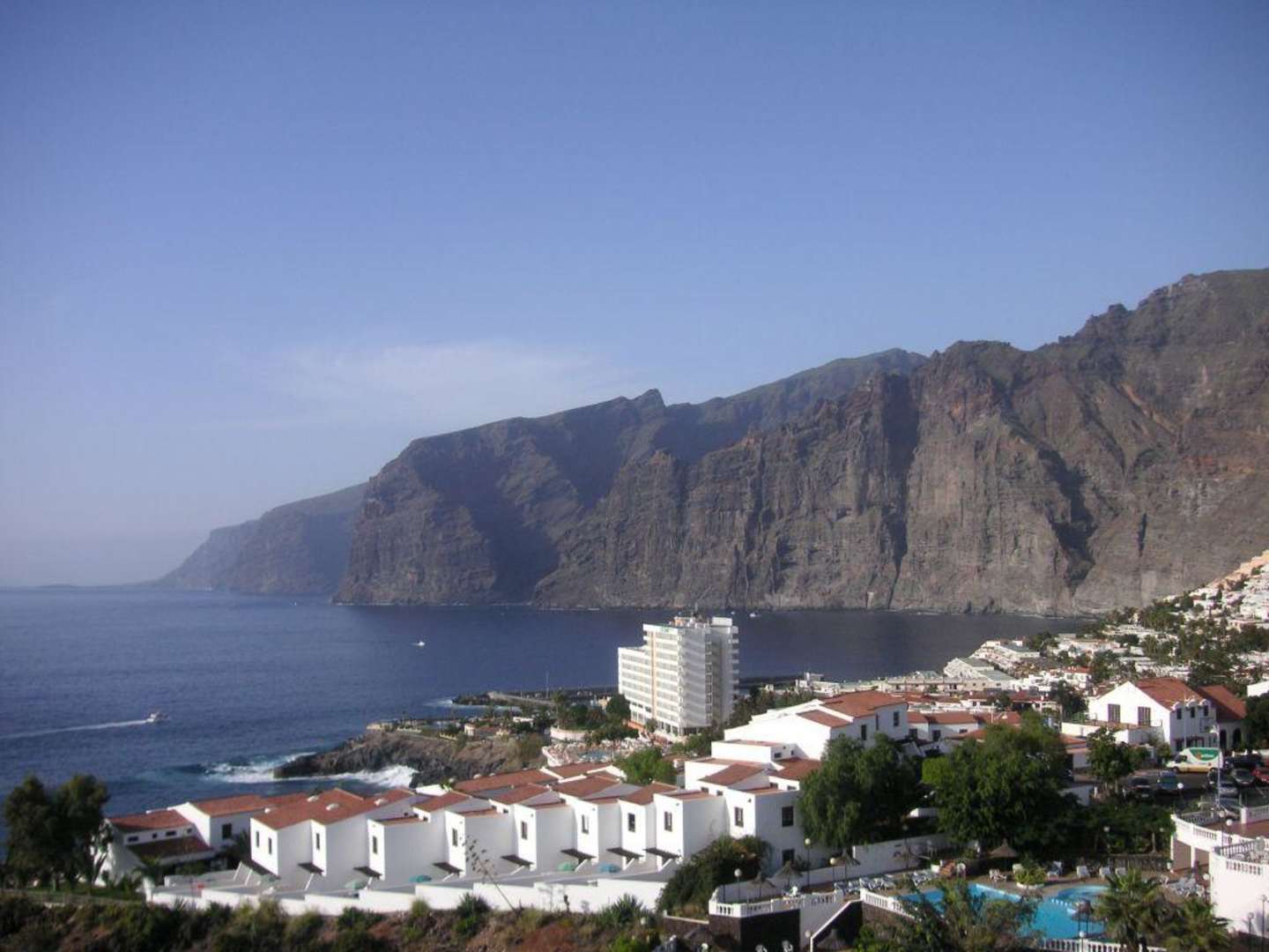 Blick von der Dachterrasse am oberen Pool auf Los Gigantes.