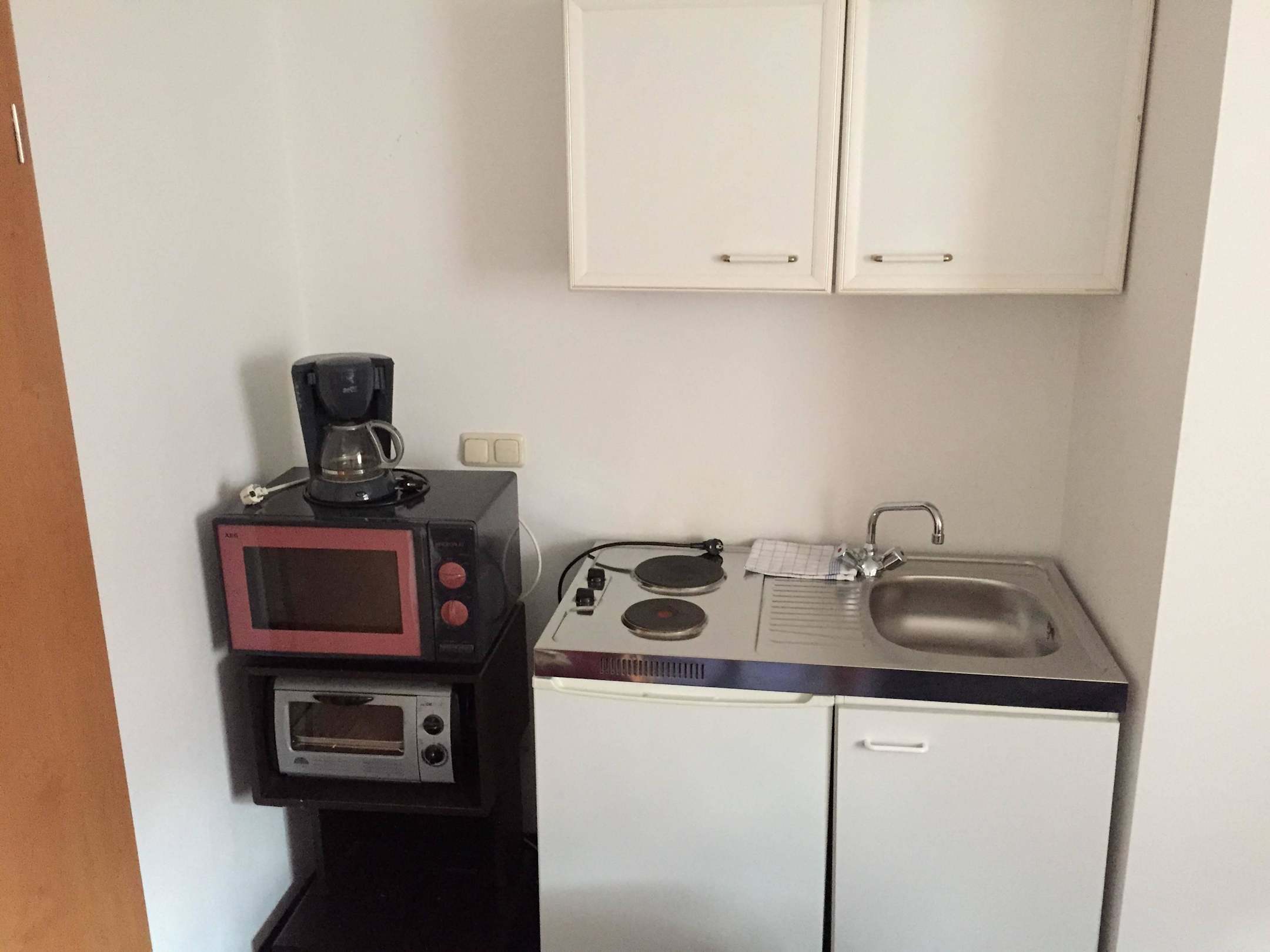 Economy-Zimmer KitchenetteSteckdosen funktionierten nicht. Besteck auch nur eingeschränkt vorhanden