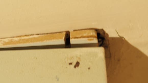 Safe im Zimmer, welcher nicht mehr richtig an der Wand verschraubt war. Dübel war ausgrissen.