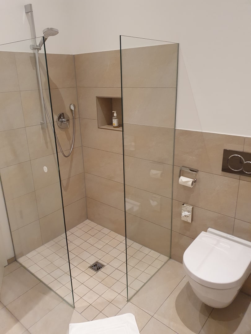 ZimmerBad im Neubau hinter der Villa