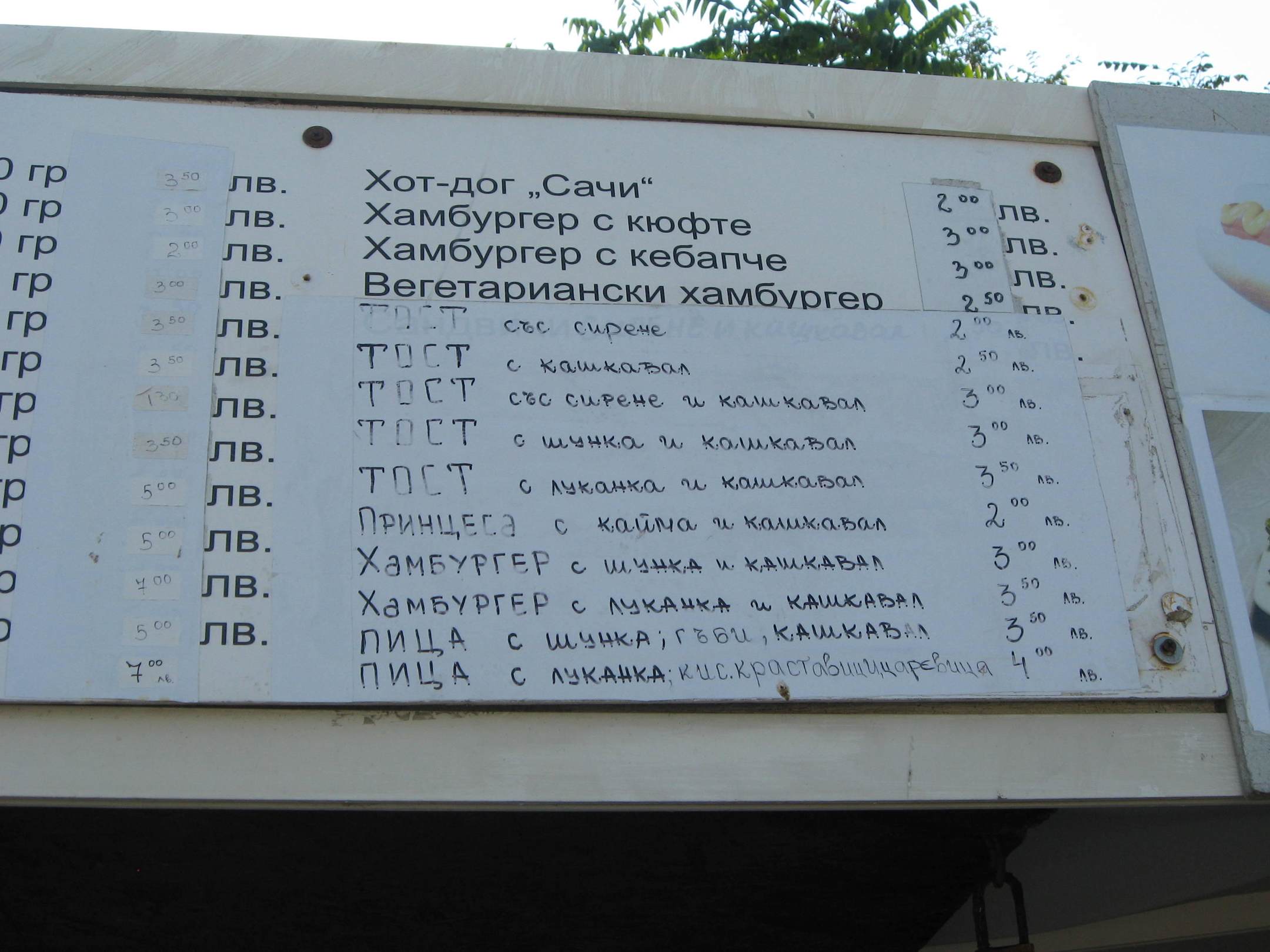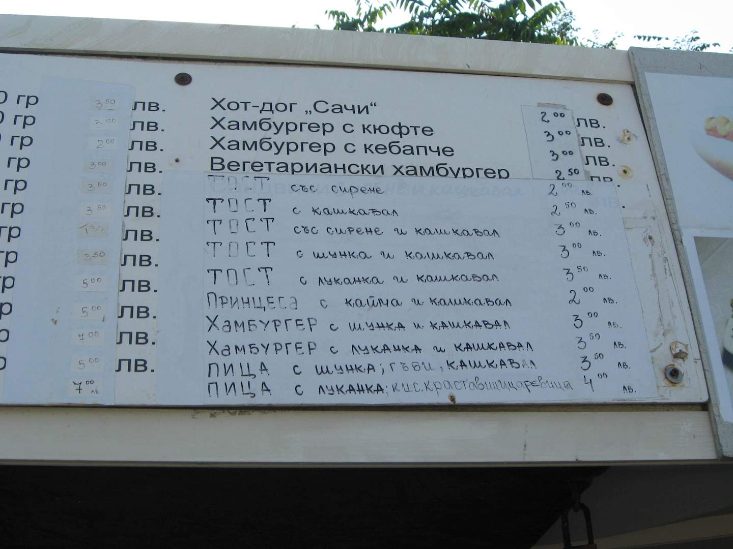 Bar am Strand-Speisekarte