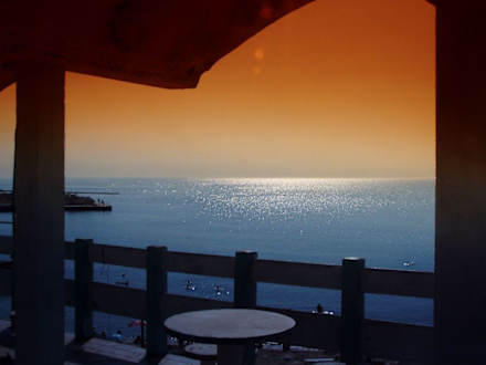 Ausblick von einer alten Terrasse oberhalb des Strandes.