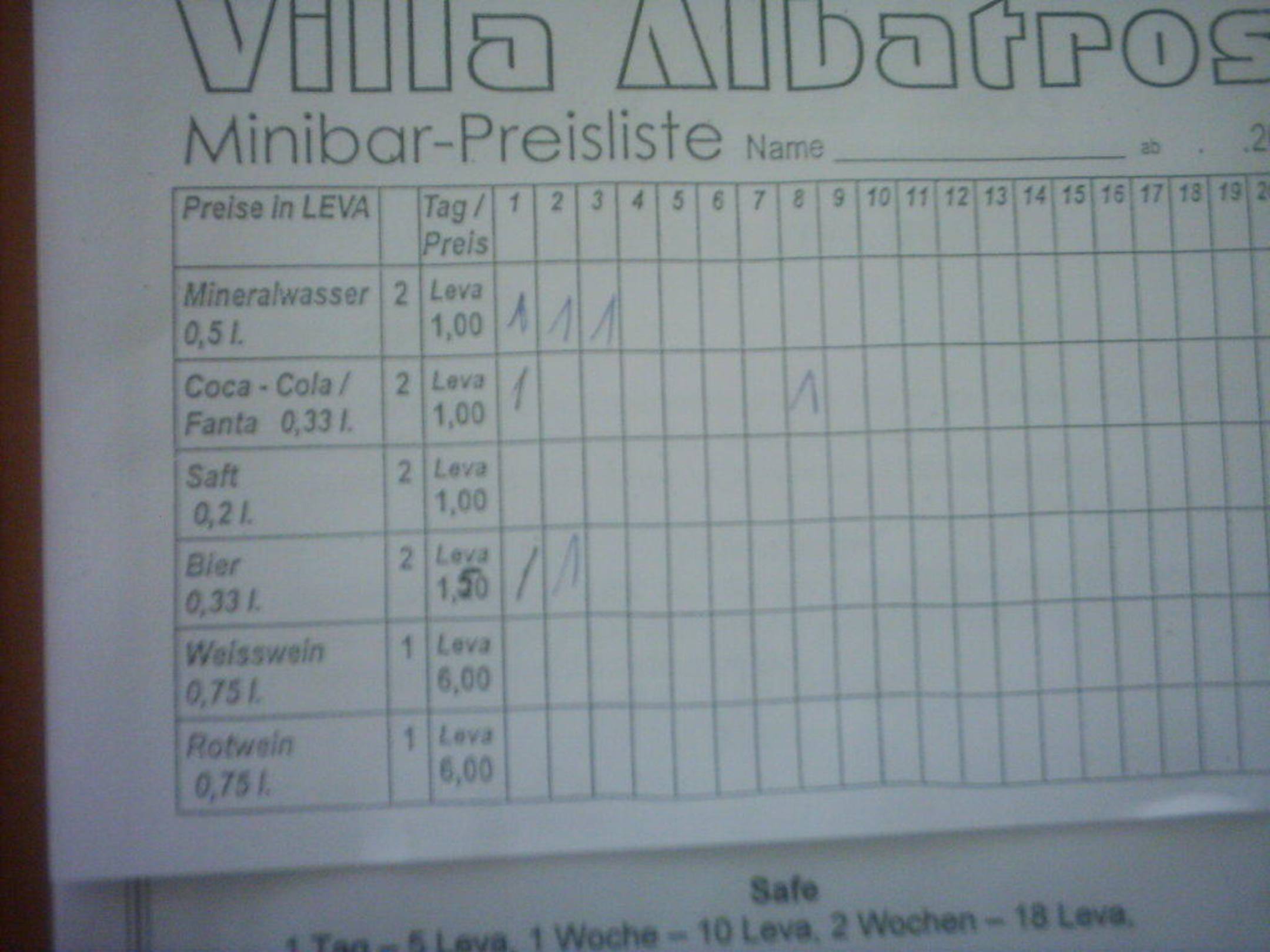 Preise Minibar