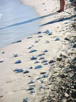 Portugiesische GaleerenStrand vor dem Hotel Villa Cuba Mitte Februar - tausende Giftquallen wurden angeschwemmt
