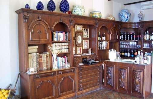 Villa Ducale's library and the bar.