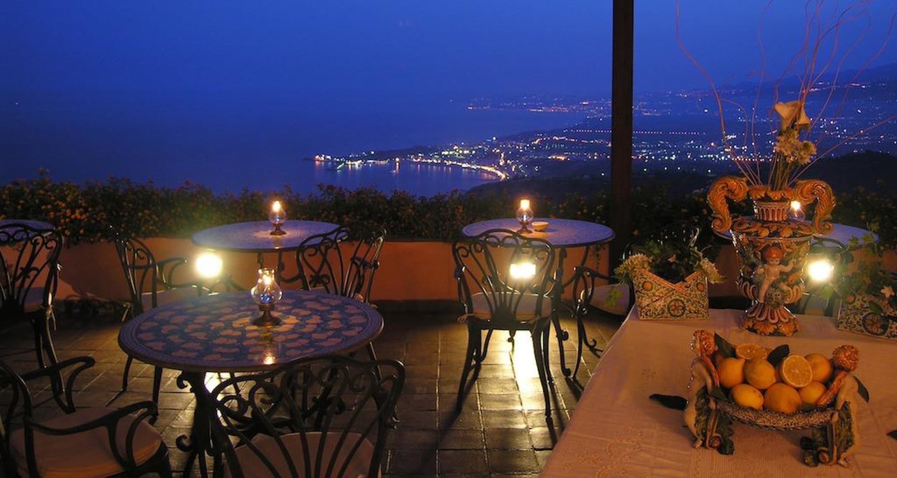 Hotel terrace restaurant at night