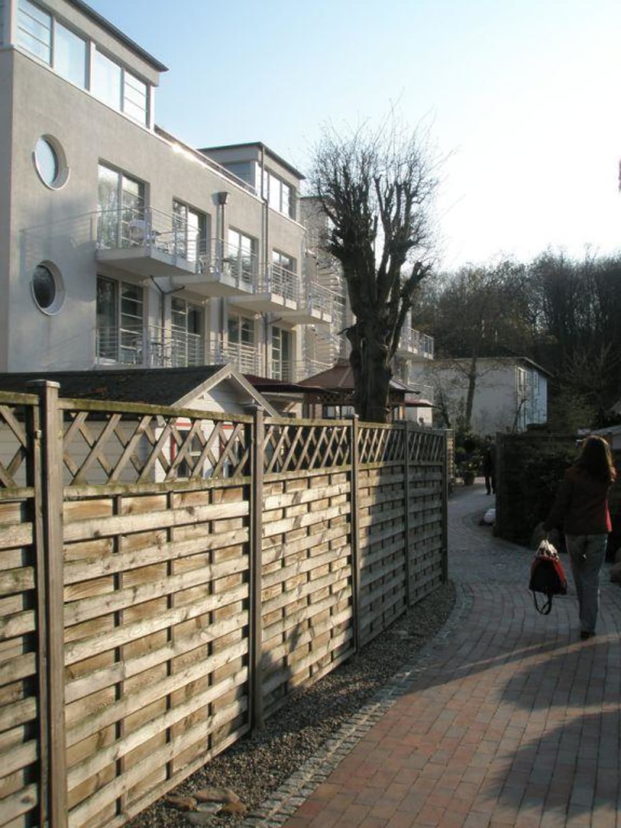 Weg zu den ZimmernDieser Weg führt am Wellnessbereich vorbei (hinter den Palisaden)zu den Zimmern.