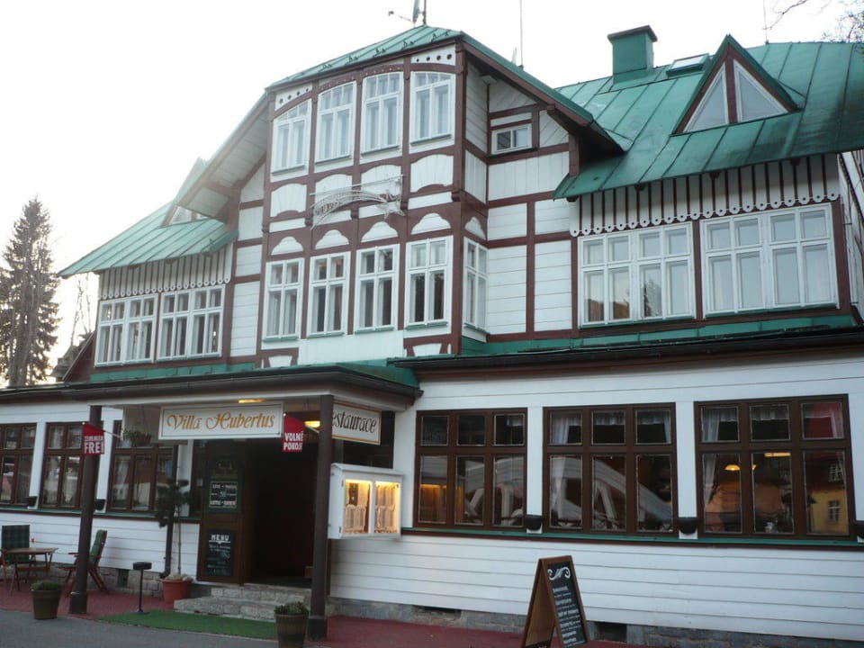 Der Eingang zur Villa Hubertus mit Restaurant