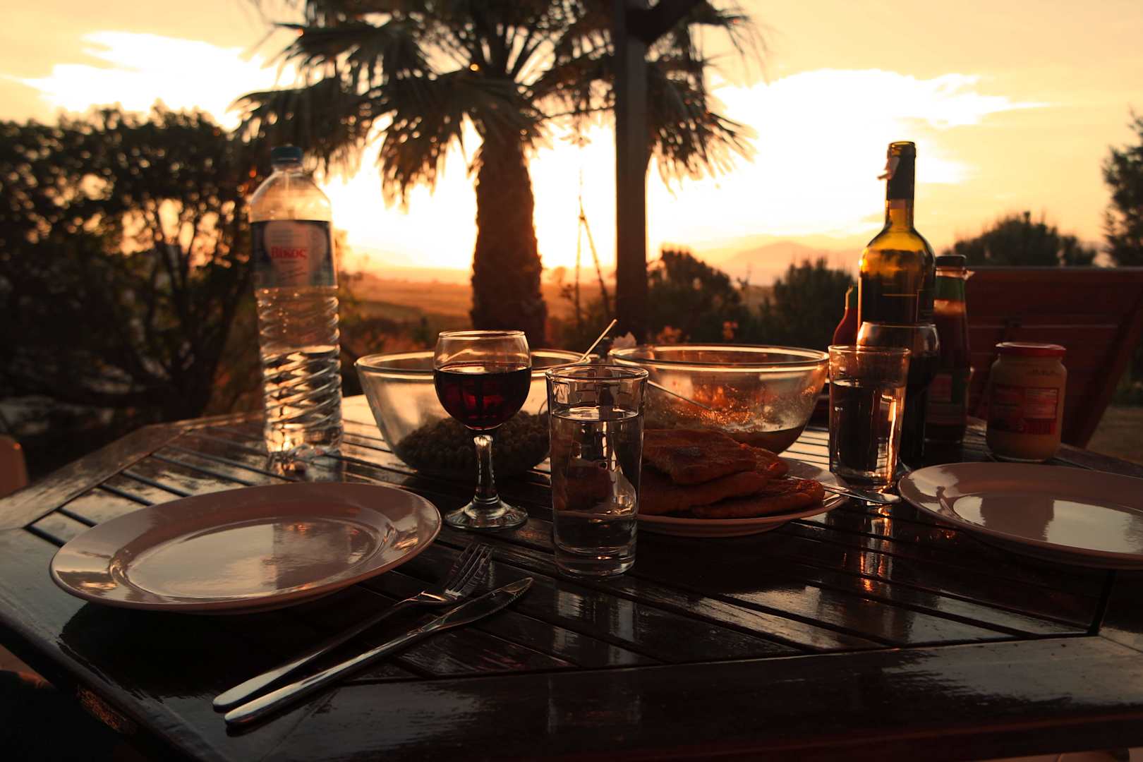 Abendessen mit Sonnenuntergang