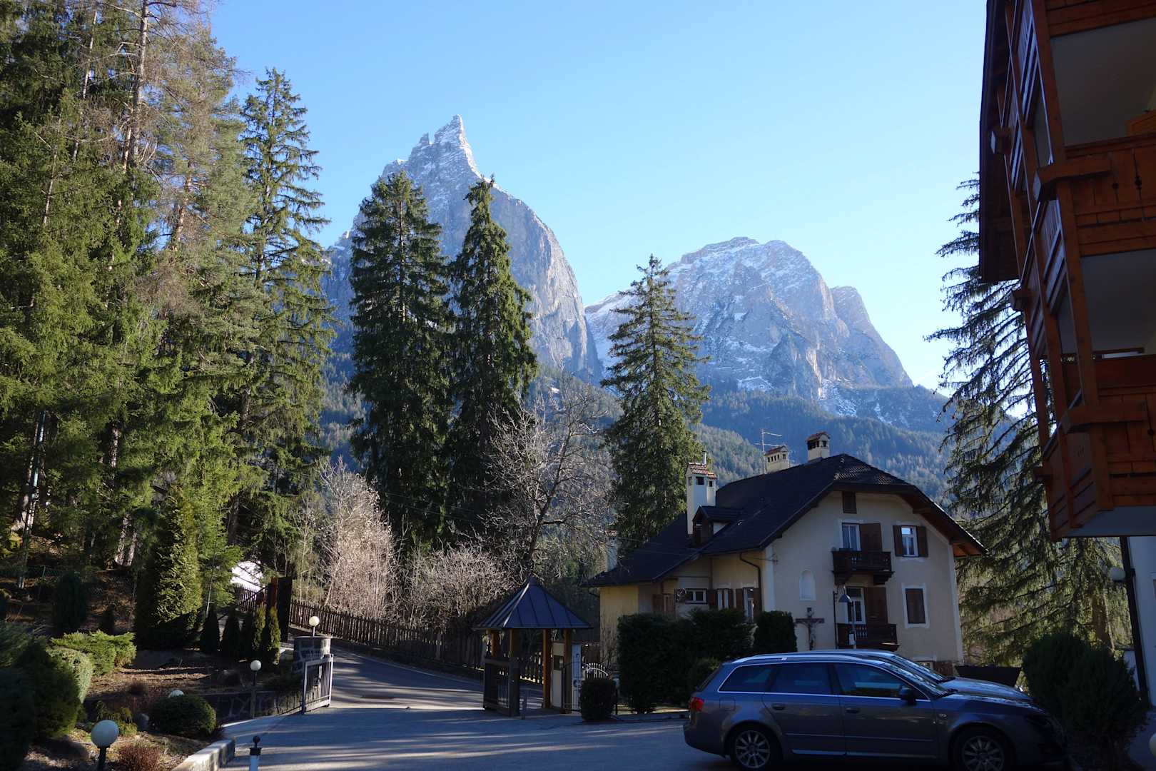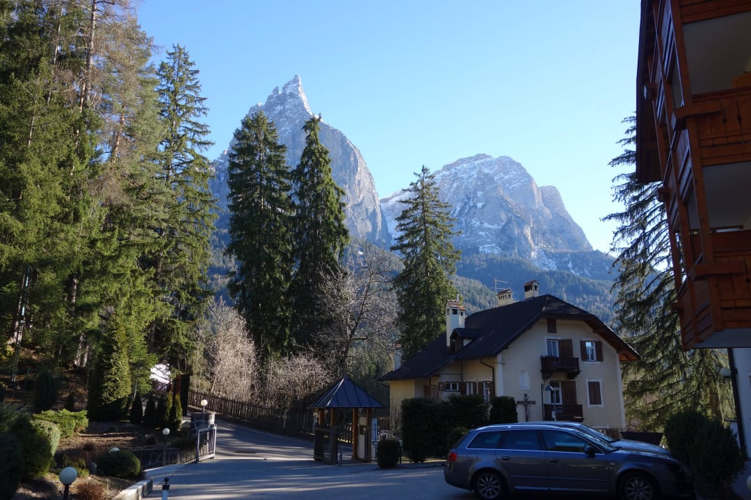 Ausblick vom Hoteleingang auf den Schlern