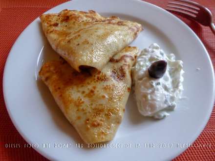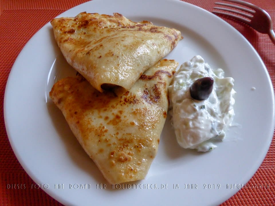 Ein Teller pro Person mit mit Pilzen gefüllten Teigtaschen. Dies zusammen mit der Salatschüssel für zwei Personen als Bestandteil des ersten Ganges des Drei-Gänge-Menüs ("Starter").