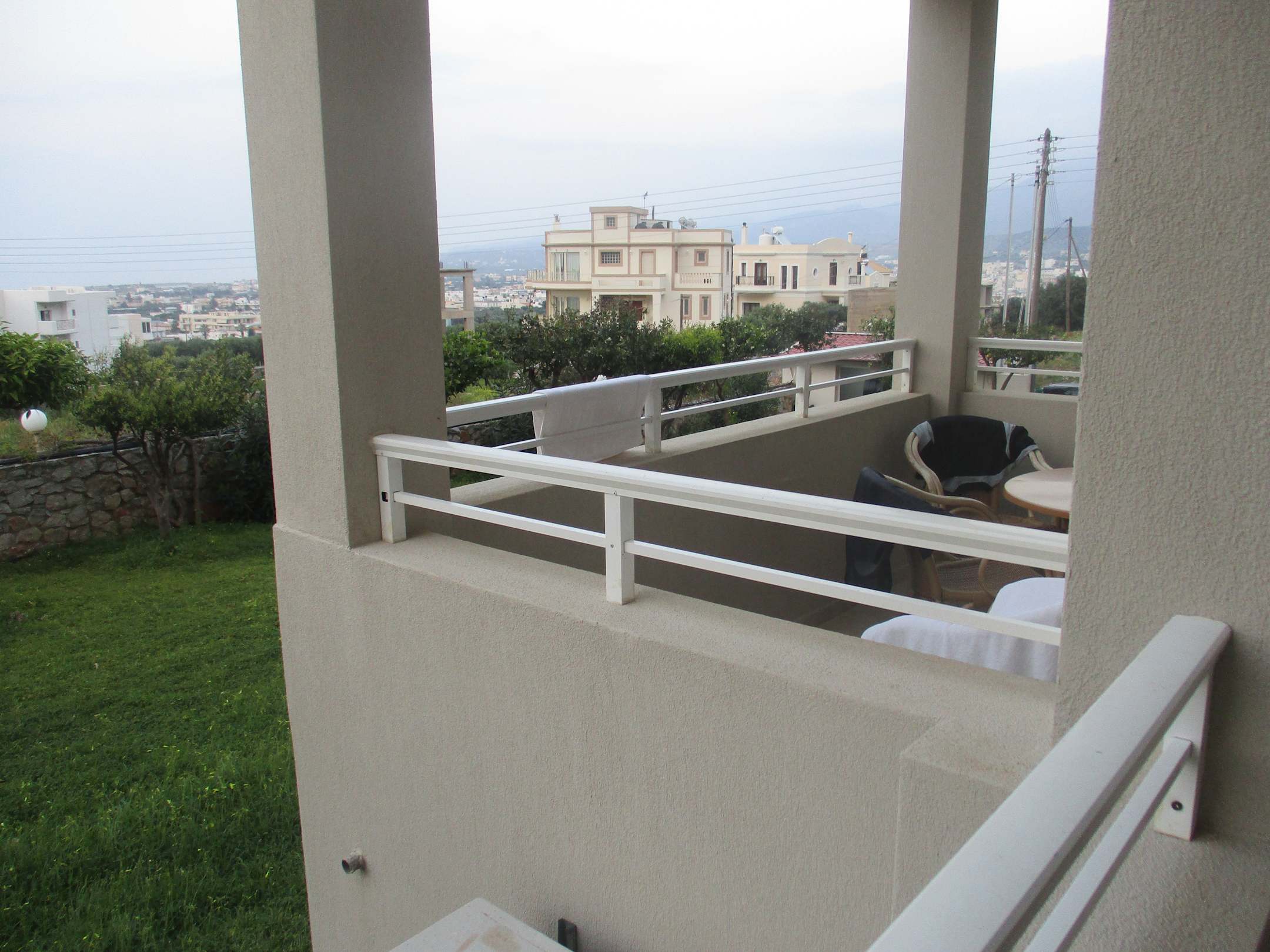 Blick von unserem Balkon Richtung Malia. im Hintergrund weit weg- das Meer.