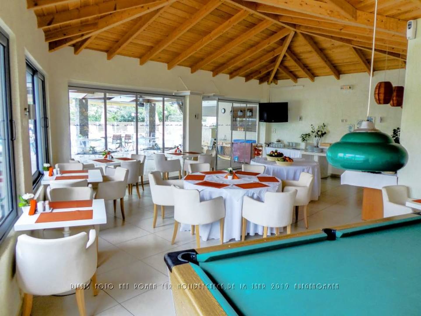 Der noch leere Speisesaal in Blickrichtung Bar.