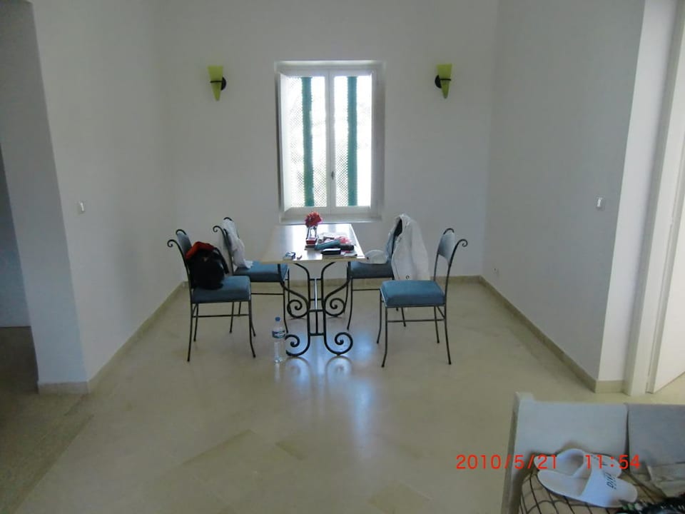 Essbereich im großen Studiogegenüber vom Wohnraum befindet sich ein Esstisch mit 4 französich stabilen Metallstühlen und entsprechendem Tisch