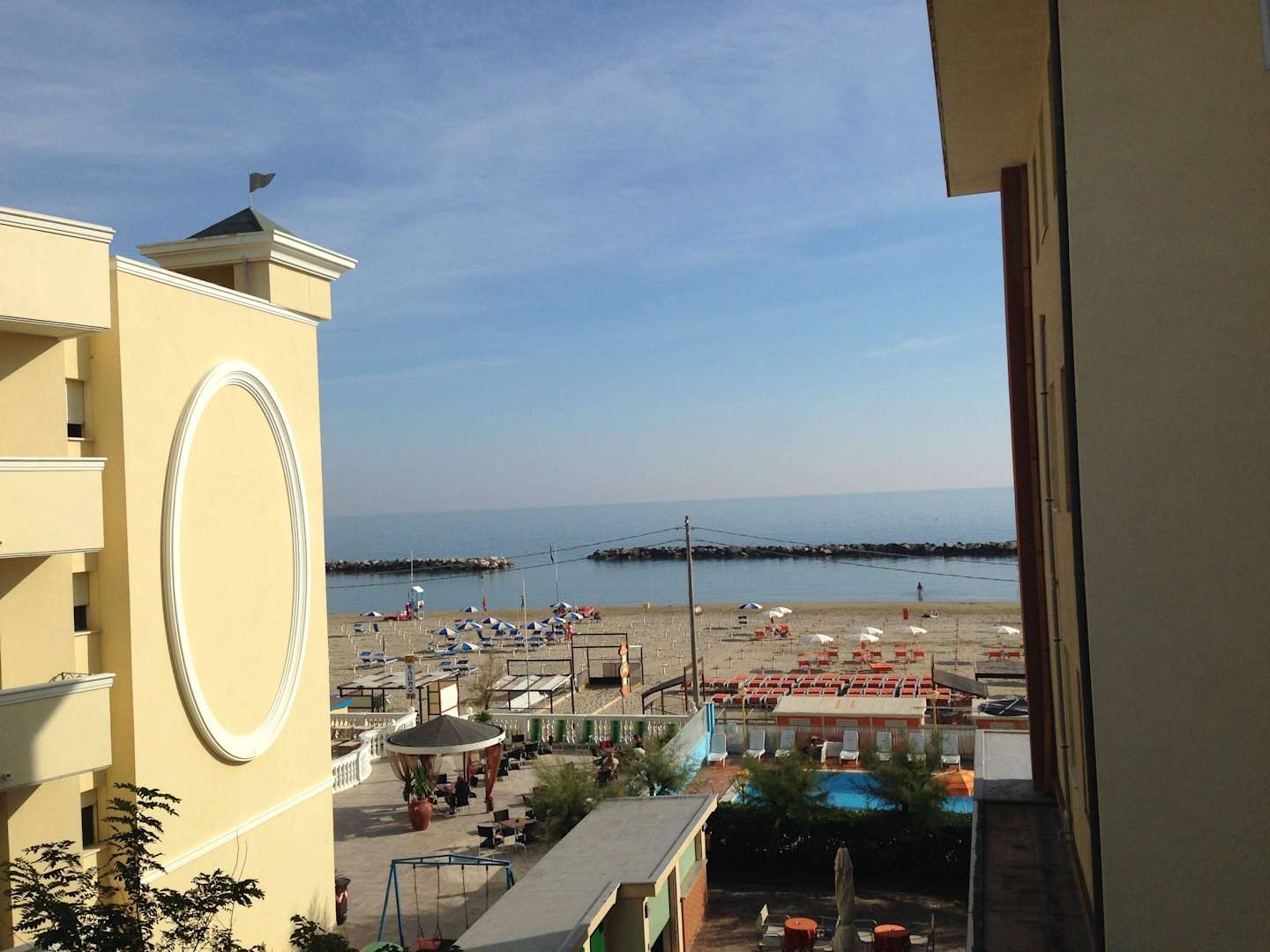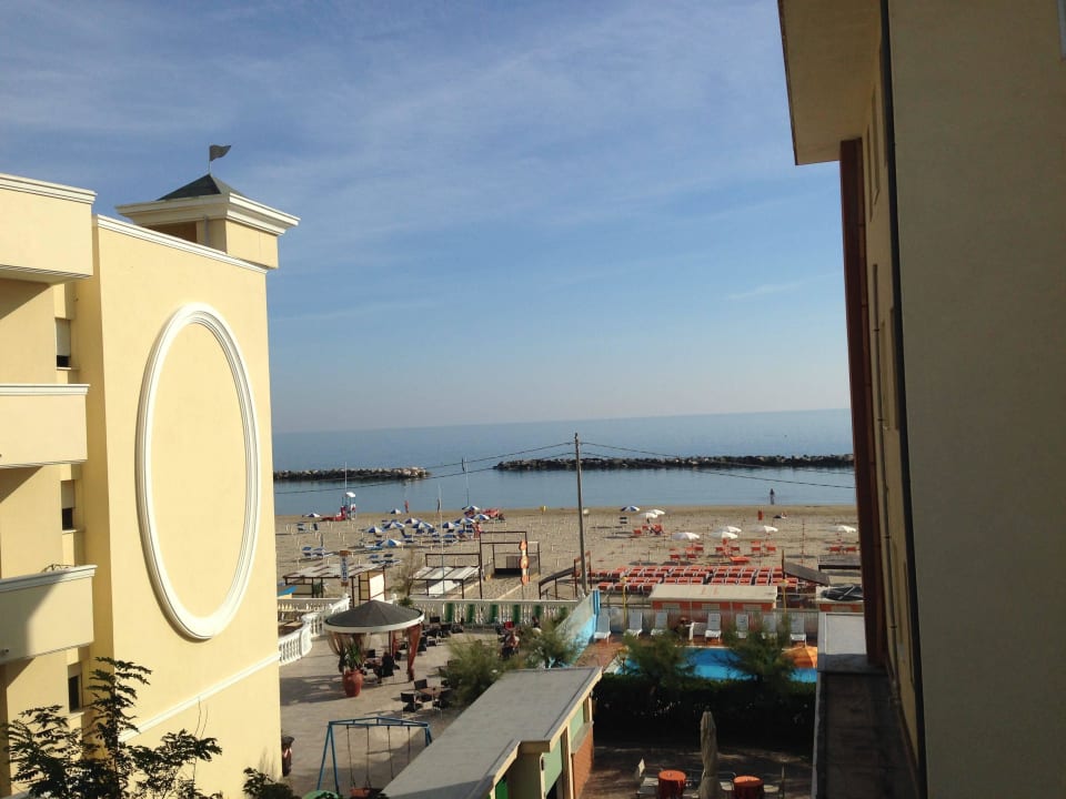 Balkonblick auf Pool und Strand