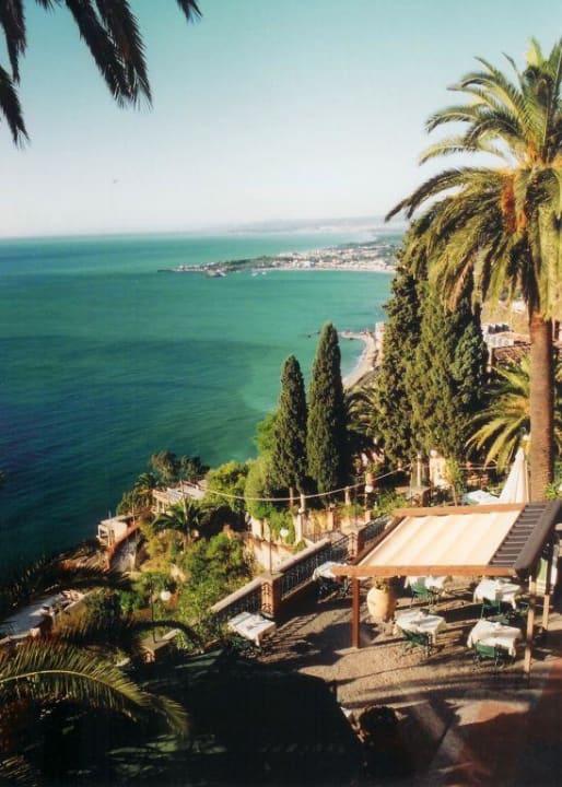 Blick von unserem Balkon auf die Terasse.