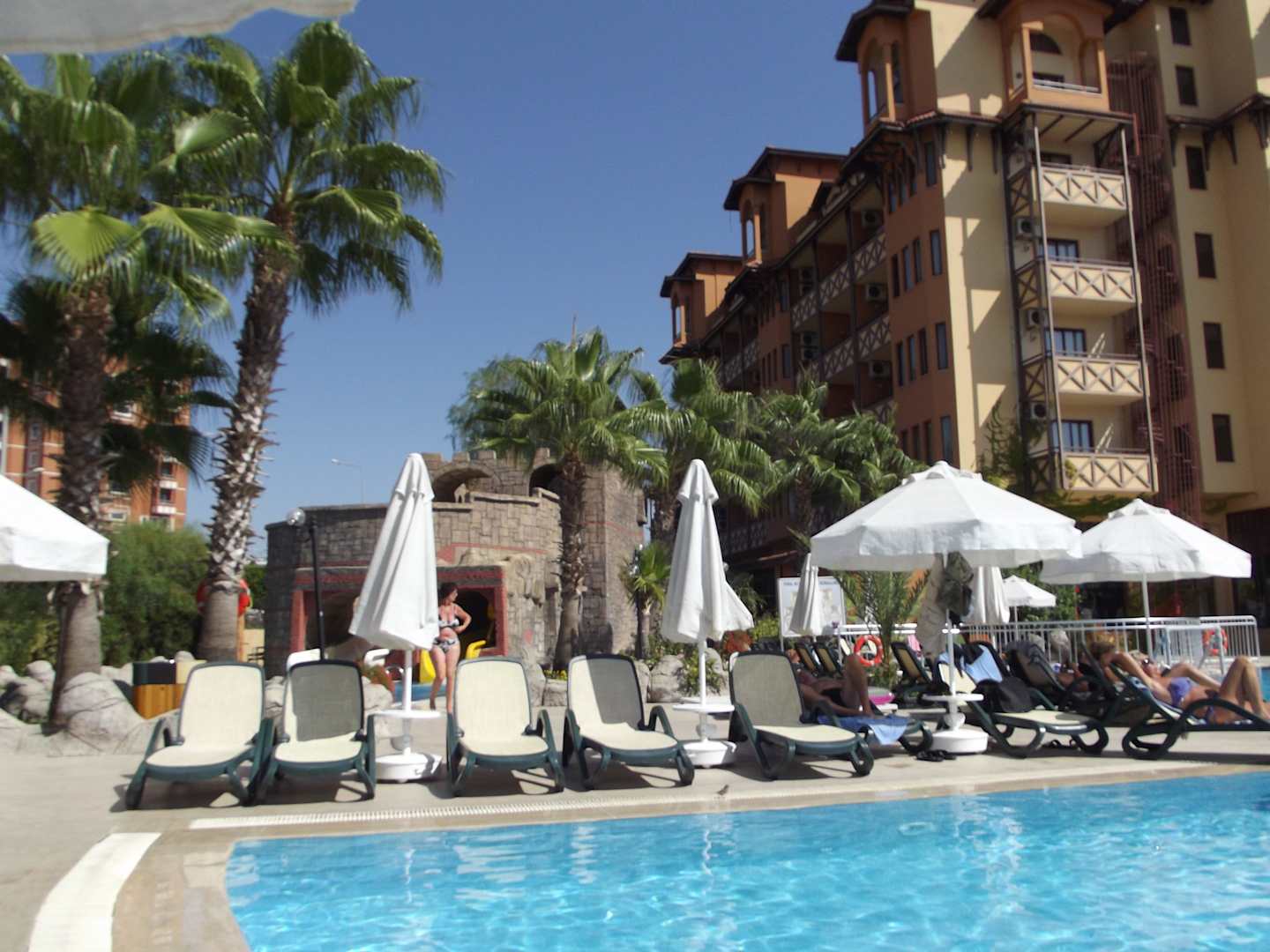Pool mit Blick aufs HauptgebäudeBlick von unserem Balkon auf einen Teil des Pools und das Hauptgebäude