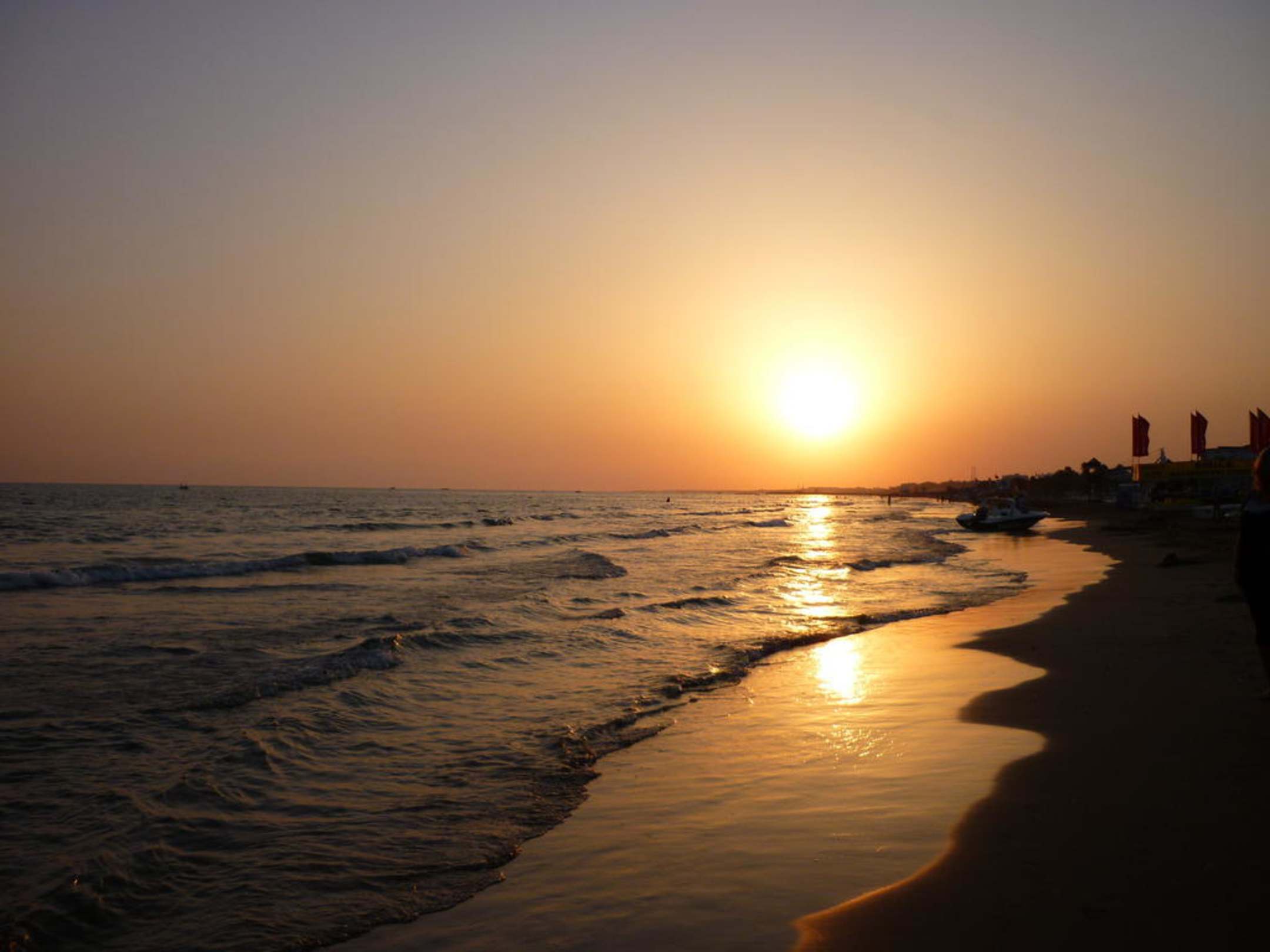 Hotelstrand bei Sonnenuntergang