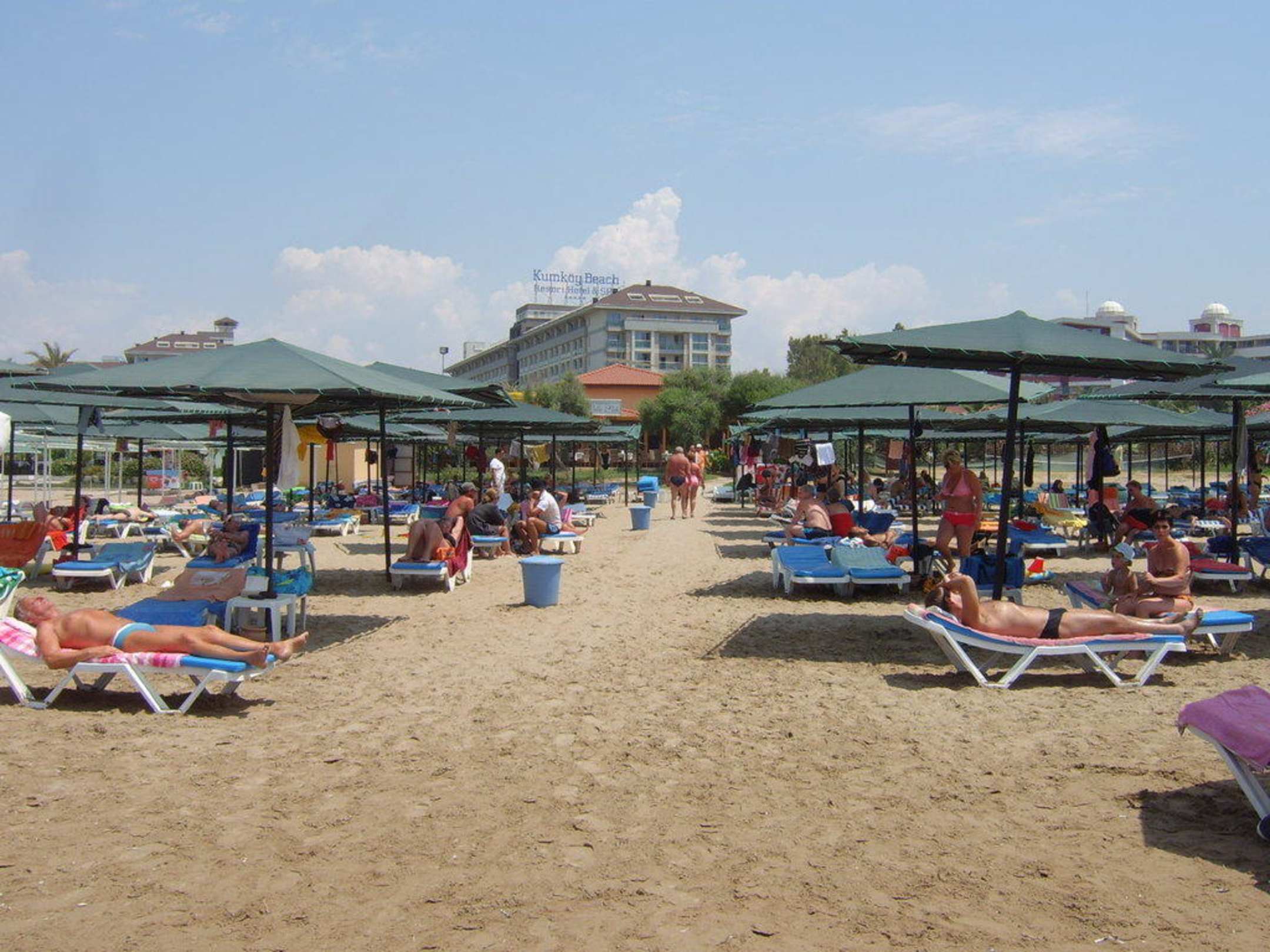 Hotelstrand...vom Wasser aus gesehen; natürlich später als 07:00 h, weil, es sind ja schon Leute da...