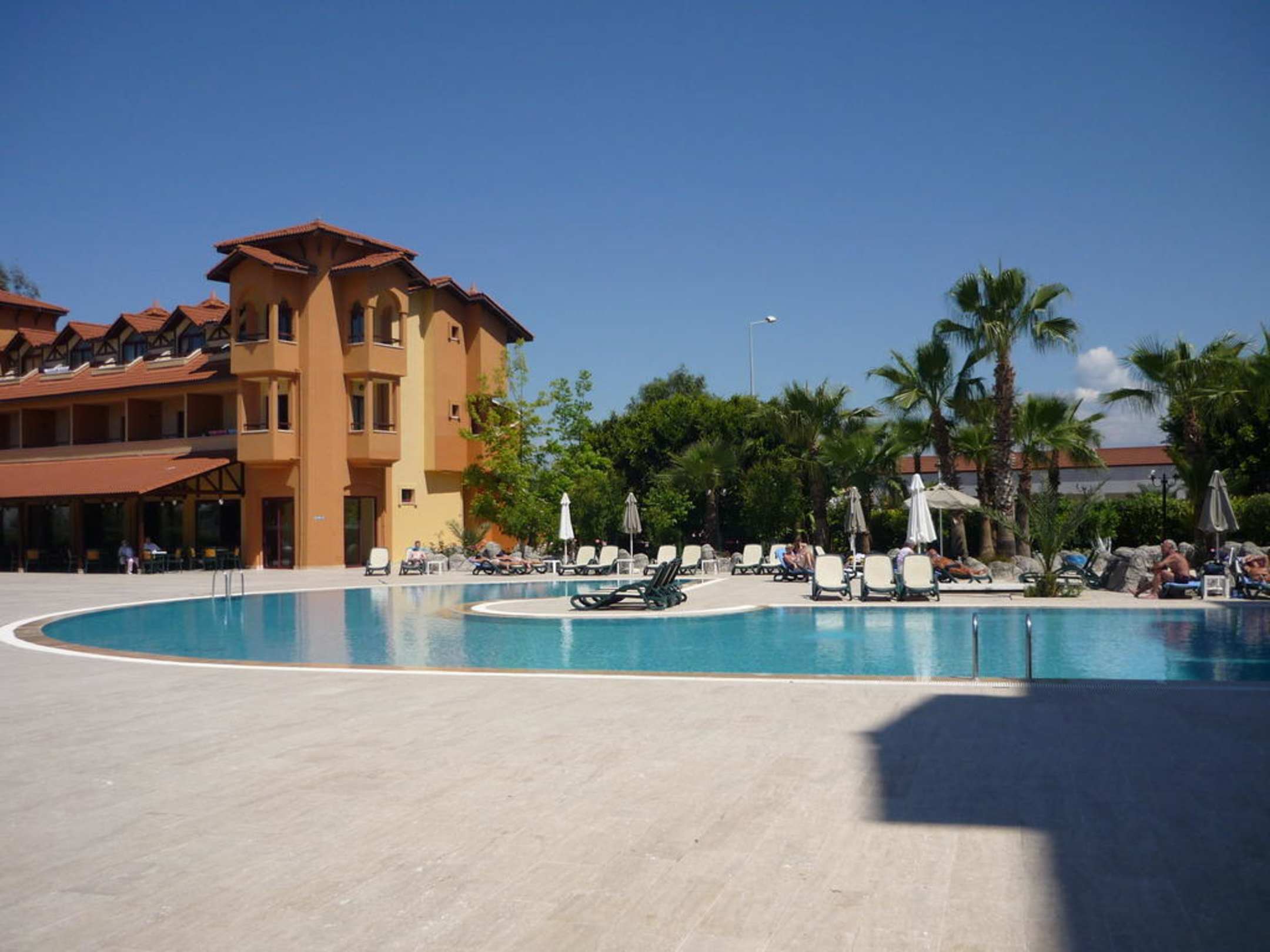 hier sieht man den Pool (die Anlage ist, wie man sieht, sehr sauber) und im Hintergrund die Poolbar (dort gab es nachmittags Kaffee & Kuchen)