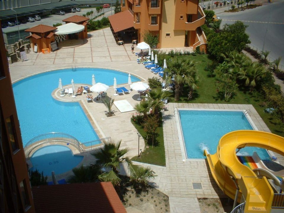 Poollandschaft von Balkon aus