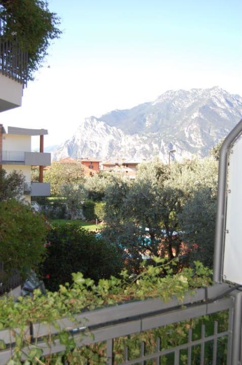 Blick vom Balkon auf die Aussenanlage.
