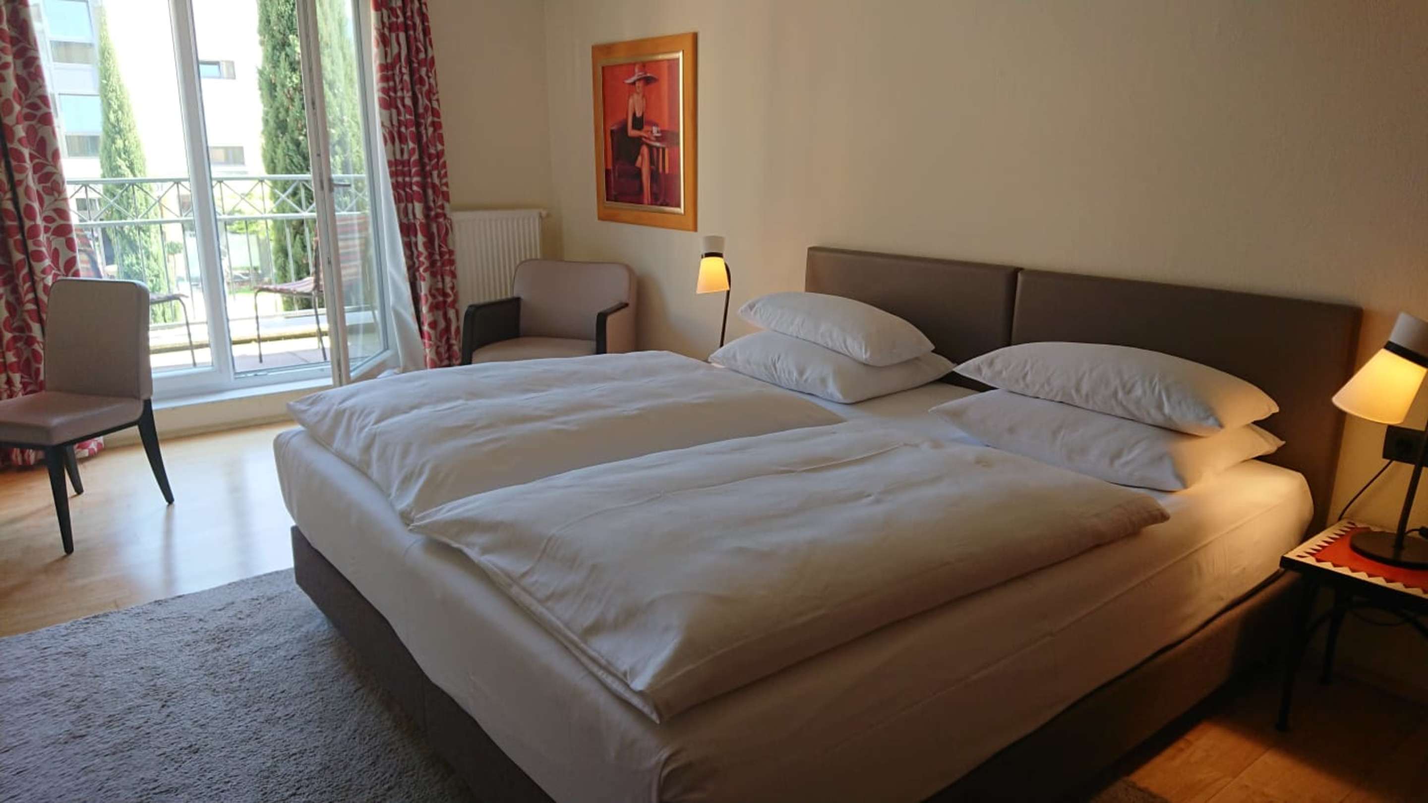 groẞes Zimmer, großes Bett mit zwei Kissen