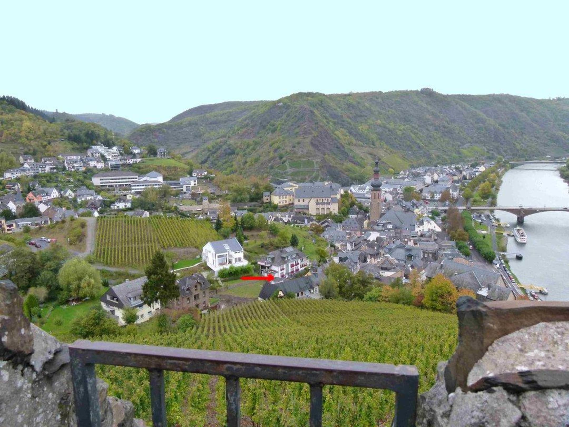 Von der Reichsburg aus gesehen - der rote Pfeil zeigt auf die Villa Tummelchen.