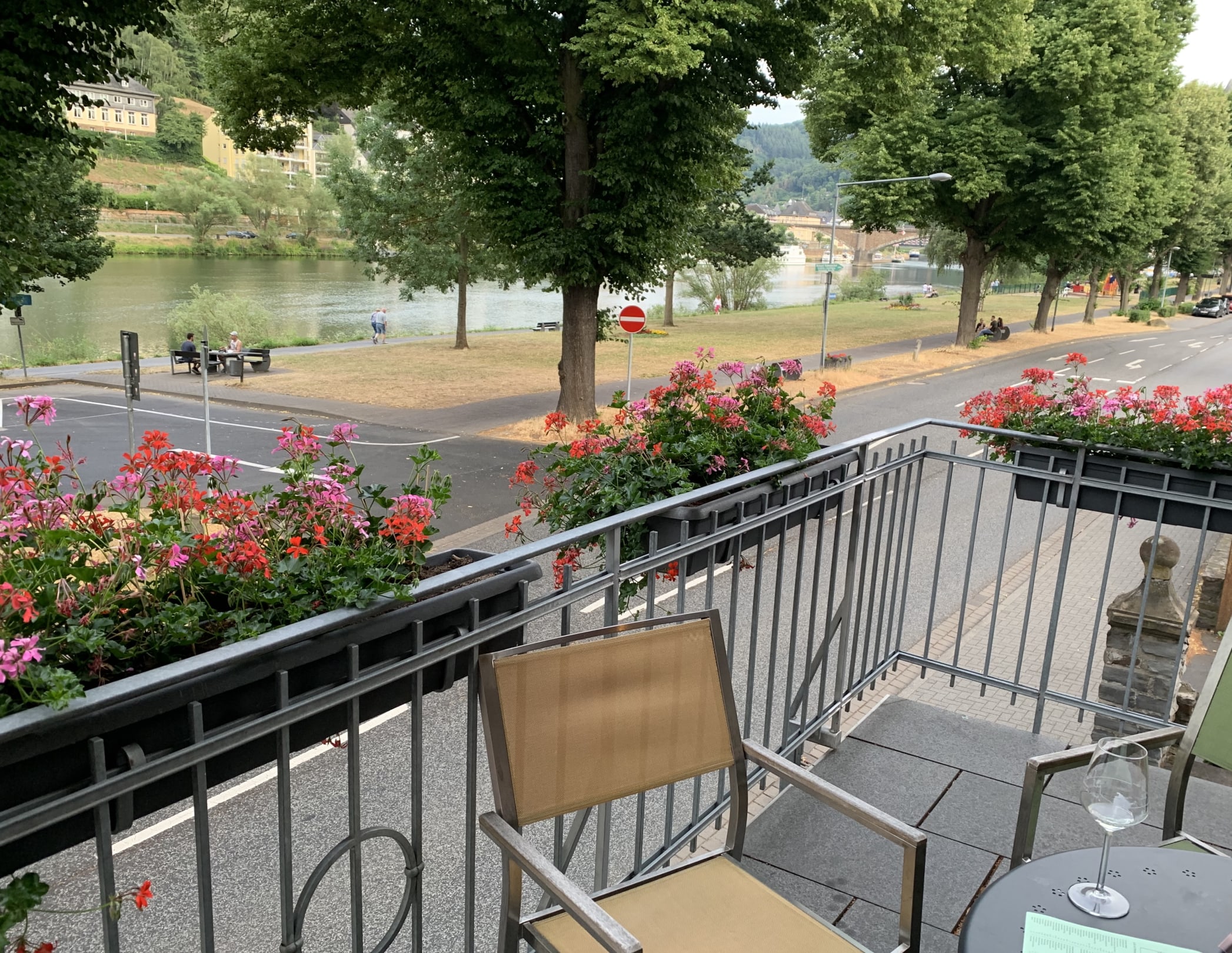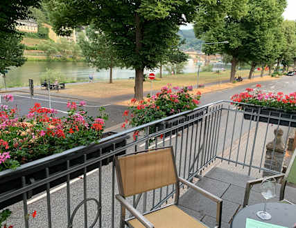 Kleine Terrasse vorne mit Blick auf die Mosel.