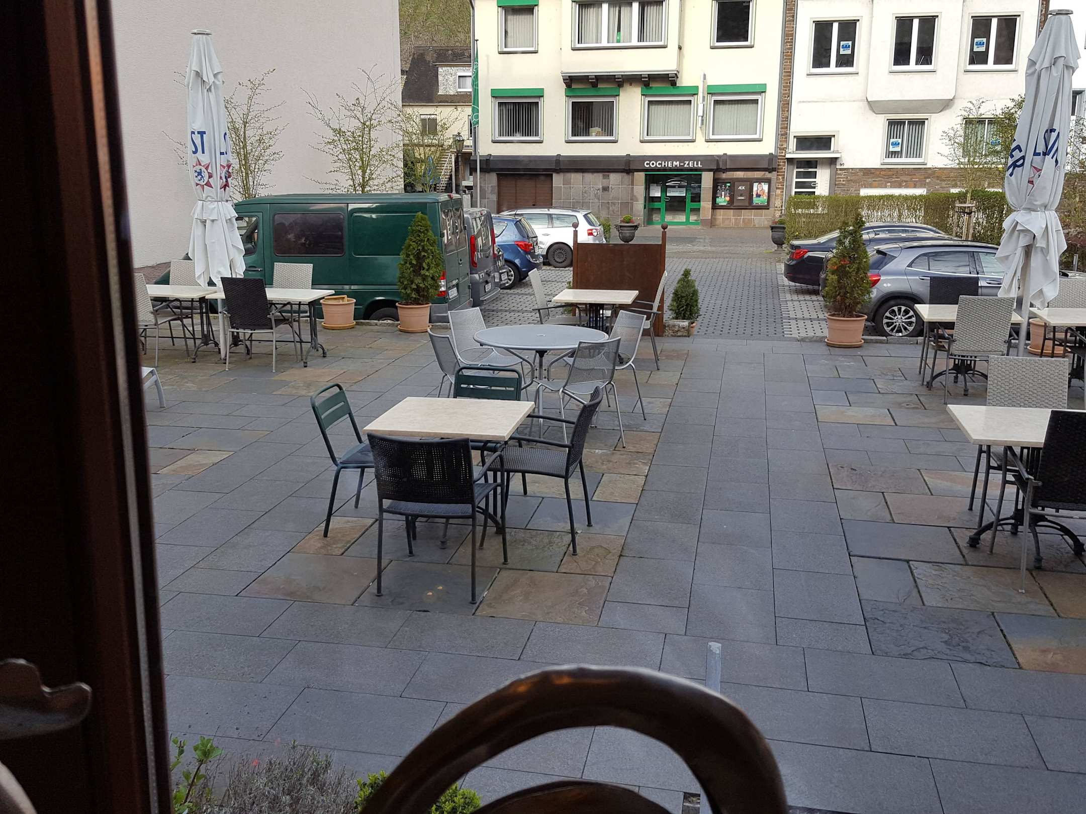 Ausblick aus dem Frühstücksraum in den Hof