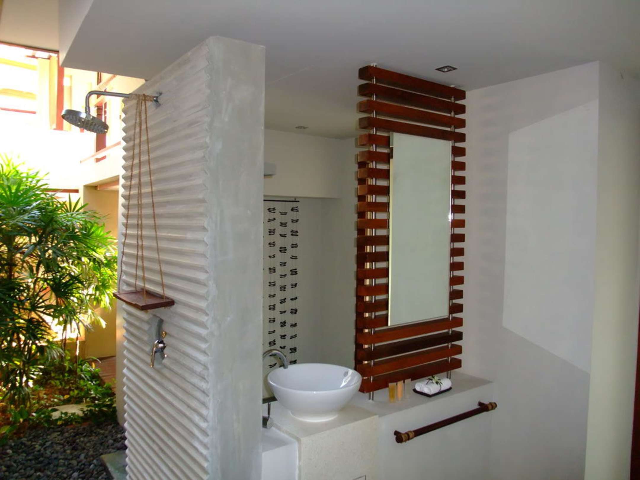 Das war im unteren Stock das Außenbad mit Waschbecken, Toilette und Dusche.