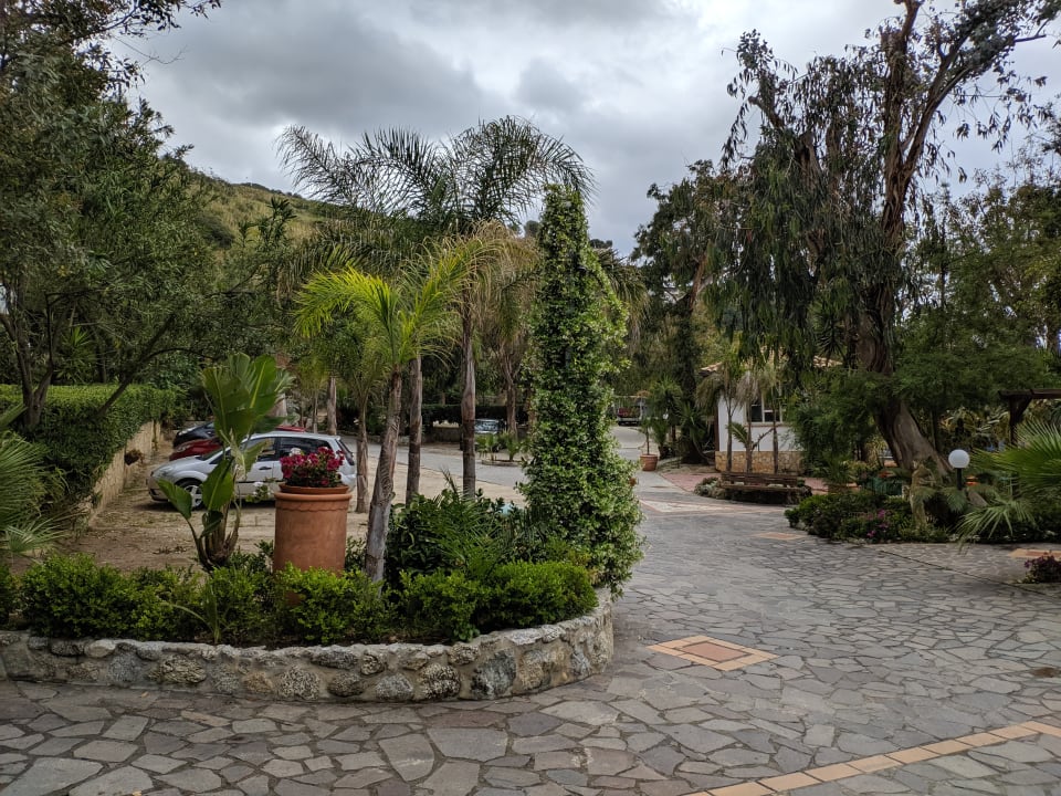 Außenanlage mit den Parkplätzen auf dem Hotelgelände.