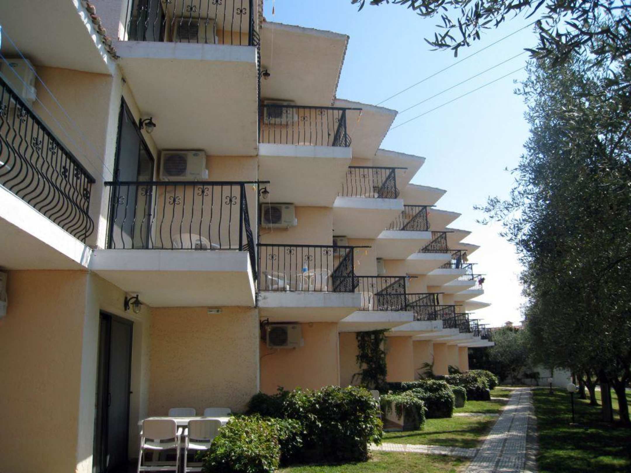 Blick vom Garten auf die Hotelzimmer