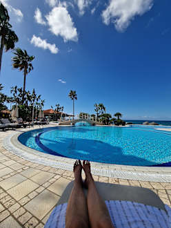 Blick auf den Pool und auf das Meer