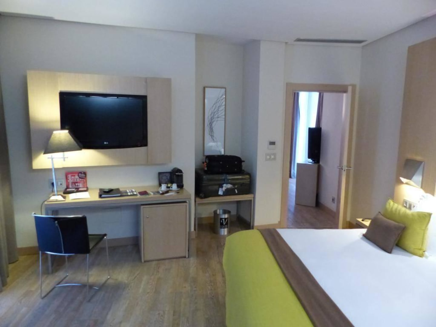 Schlafzimmer mit Blick auf den Schreibtisch