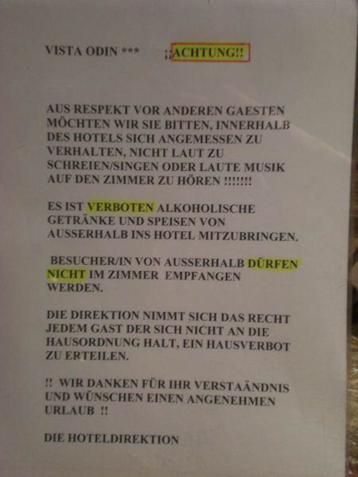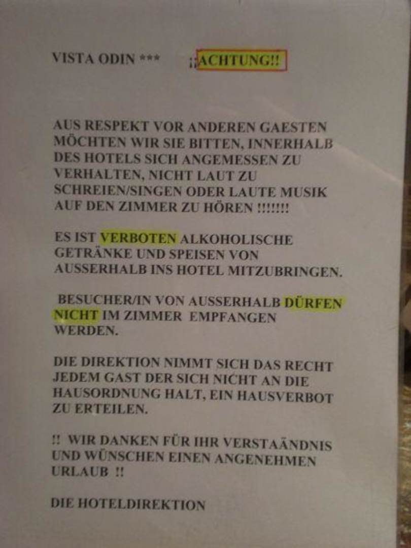 Verhalten im Hotelziemliche Einschränkungen für junge Leute, leider