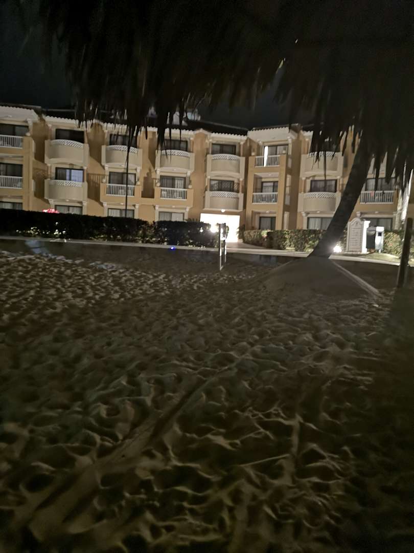 Blick vom Strand auf meinen Wohnblock am Abend