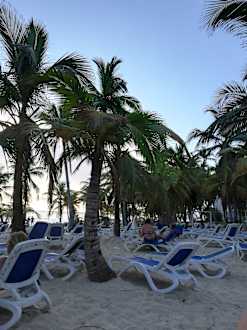 Genug liegen am Strand vorhanden. Leider keine Tischchen dazu. Schatten spenden die Palmen.
