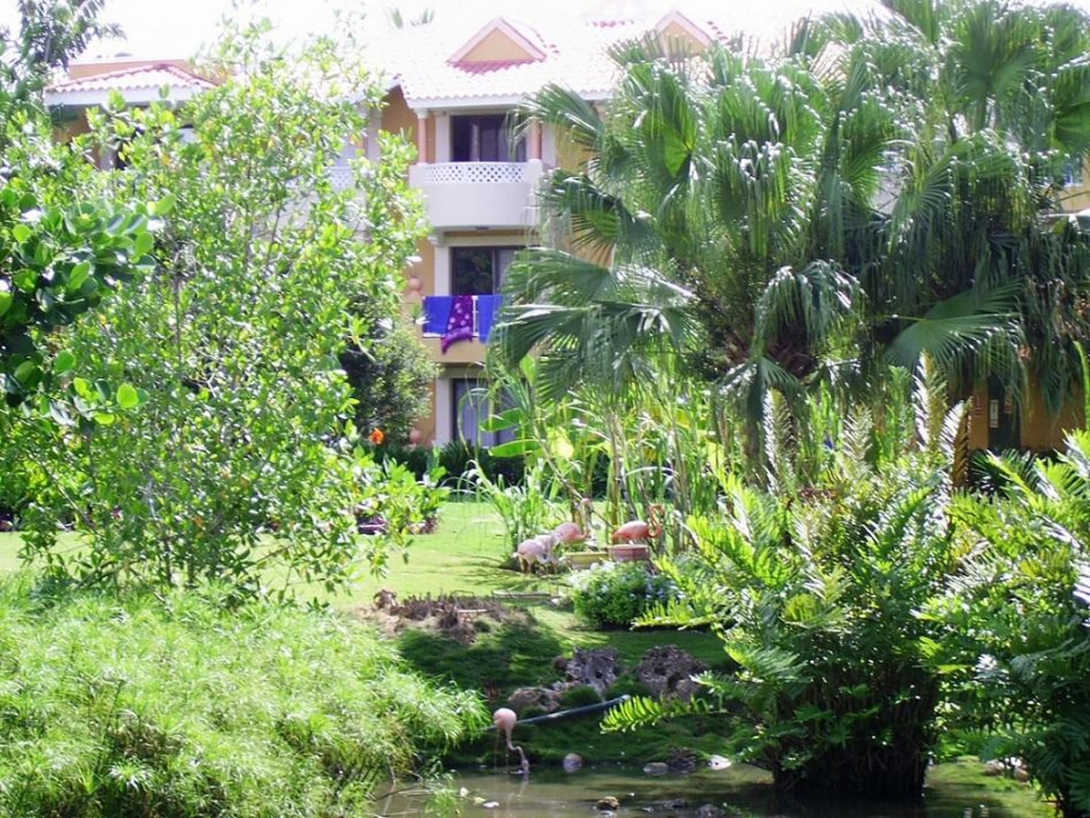 Gartenanlage mit Flamingos