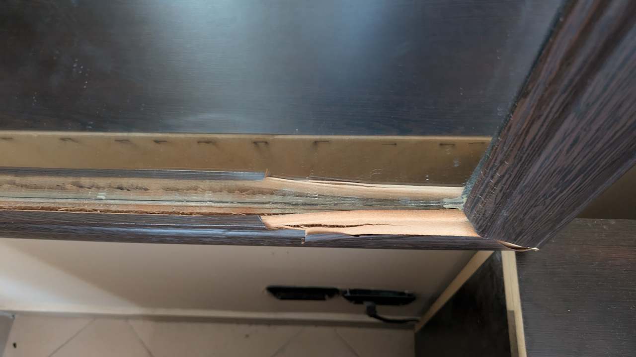 Vom Tropfwasser der der Klimaanlage zerstörter Spiegelrahmen