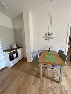 Kleine Küche mit Esszimmer - Verbindung zu den einzelnen Schlafzimmern.